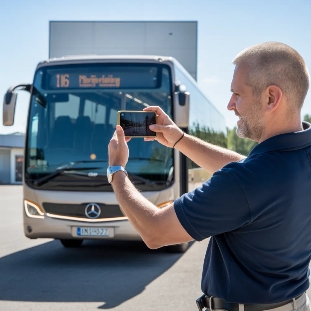 Lähetä meille kuvat linja-autostasi WhatsAppissa tai sähköpostilla, ja saat tarjouksen nopeasti.